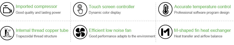 3.The refrigeration parameters are based on the inlet and outlet air temperature 25℃ / 10℃and the condensation temperature 35℃.